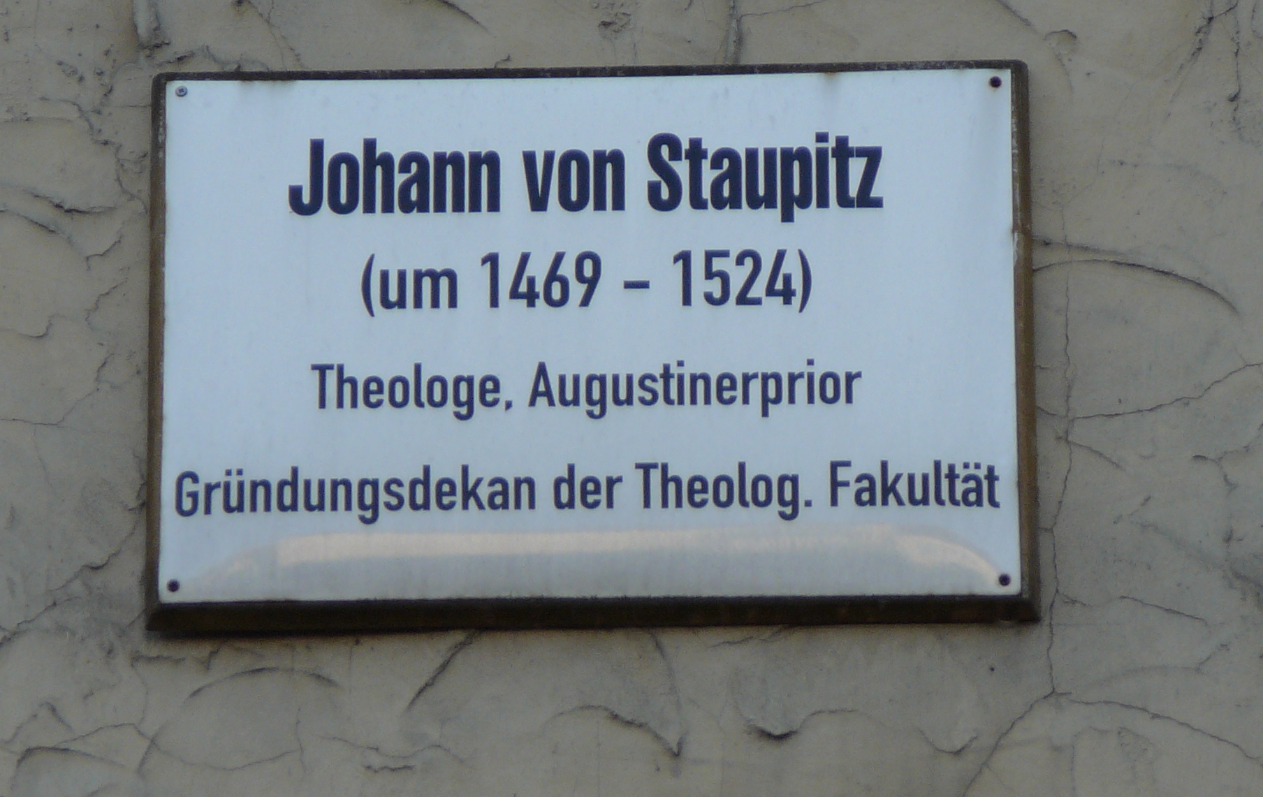 von Staupitz — theologian and dean at the university in Wittenberg.