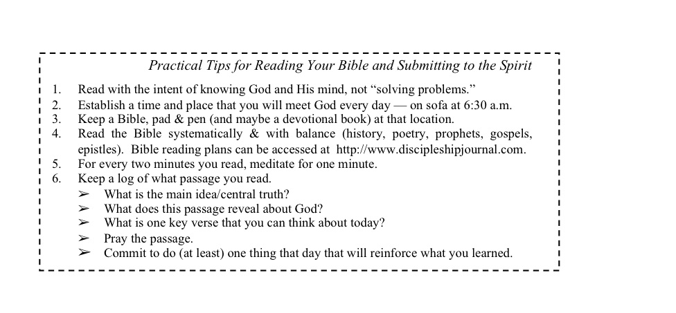 Saving money, losing weight, driving the speed limit, and speaking graciously all begin with a commitment to consistently follow through on a particular pattern of behavior. And spiritual transformation also begins with a commitment to allow the Spirit of God to use the Word of God to make you into a man of God. Scripture will only benefit you and change you when you intentionally take action on what you are learning and reading. Reading and learning without application will result only in a prideful, hardened heart. So every time you approach the Scriptures, make David’s prayer your prayer too: “Create in me a clean heart, O God” (Ps. 51:10).
