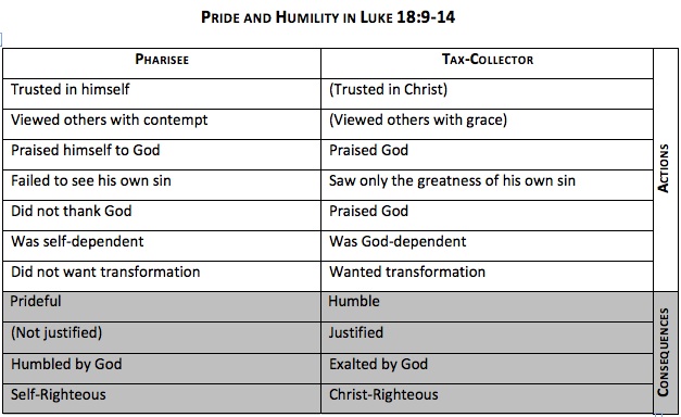 So here is a chart of this parable that can serve as a self-examining test. What are the activities of my life — am I proud or humble?