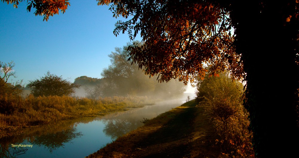 “Autumn sunrise on still waters” by Terry Kearney is marked with CC0 1.0.